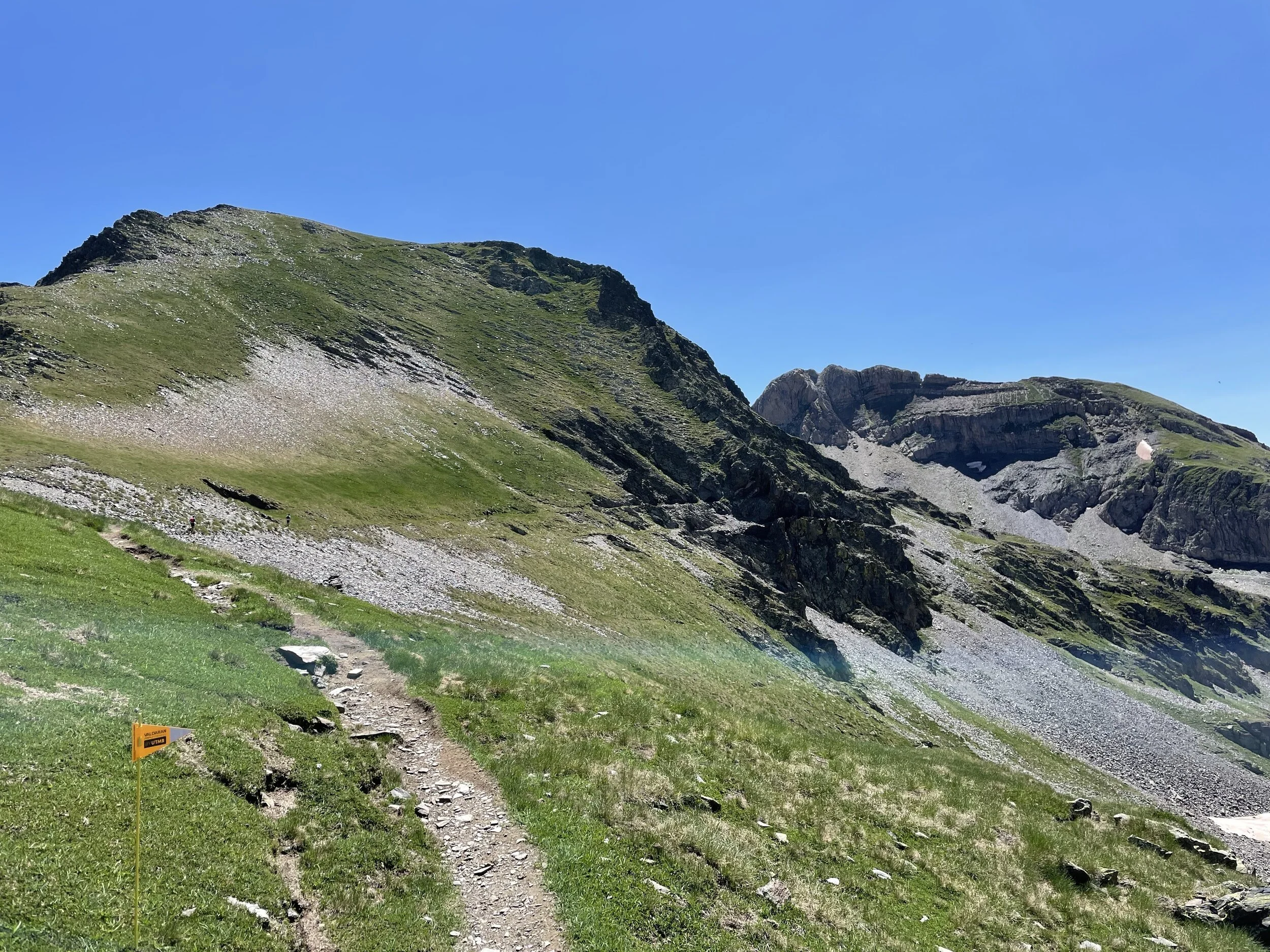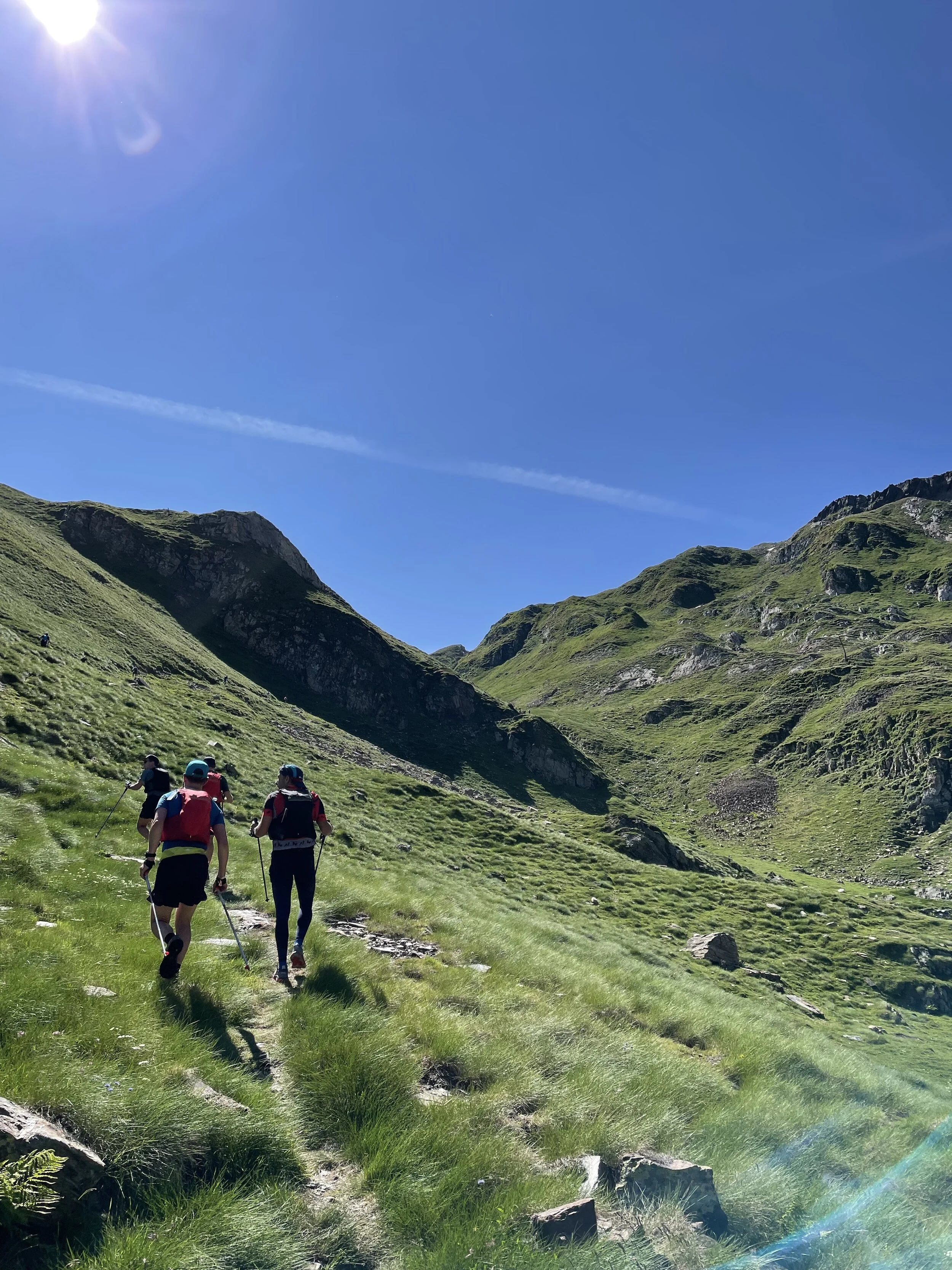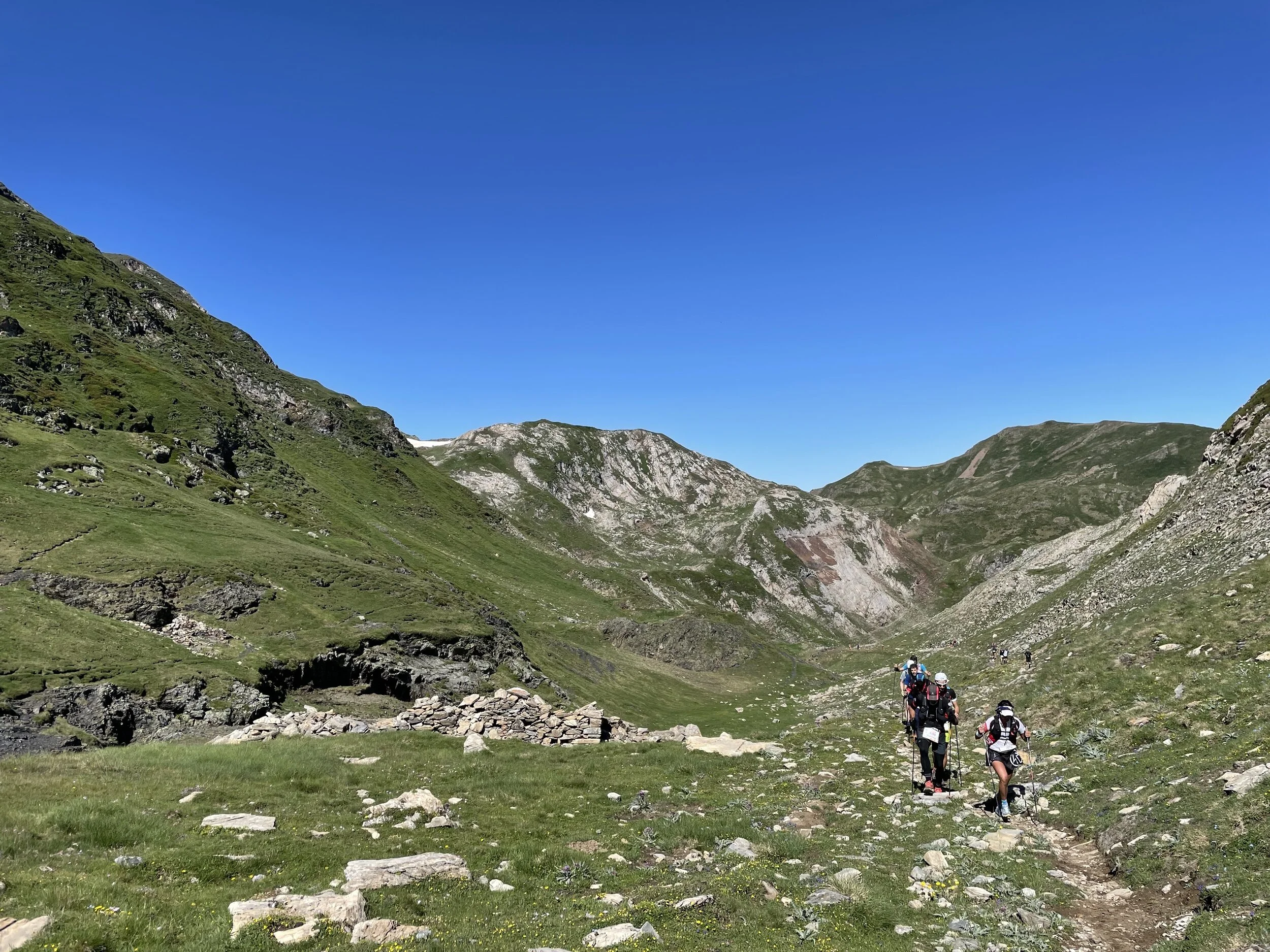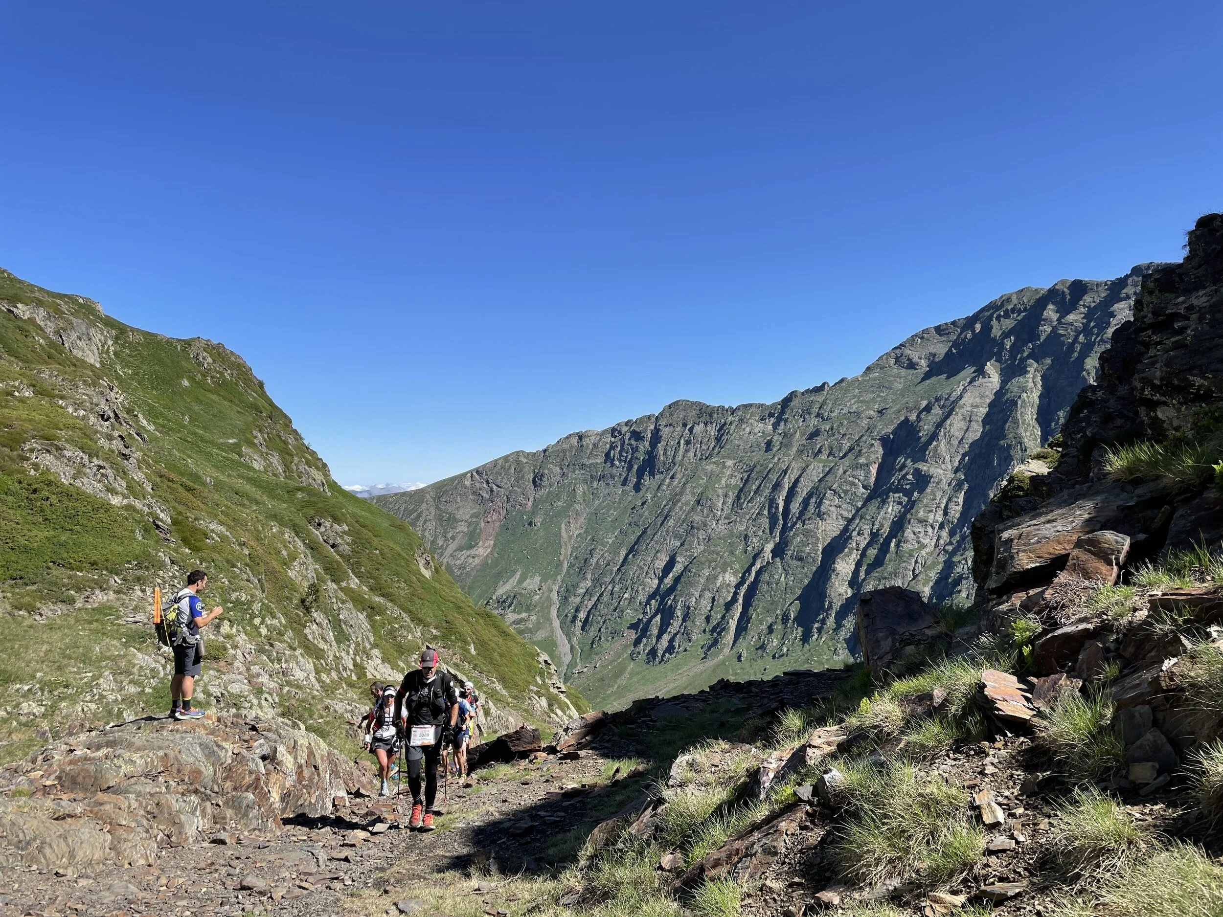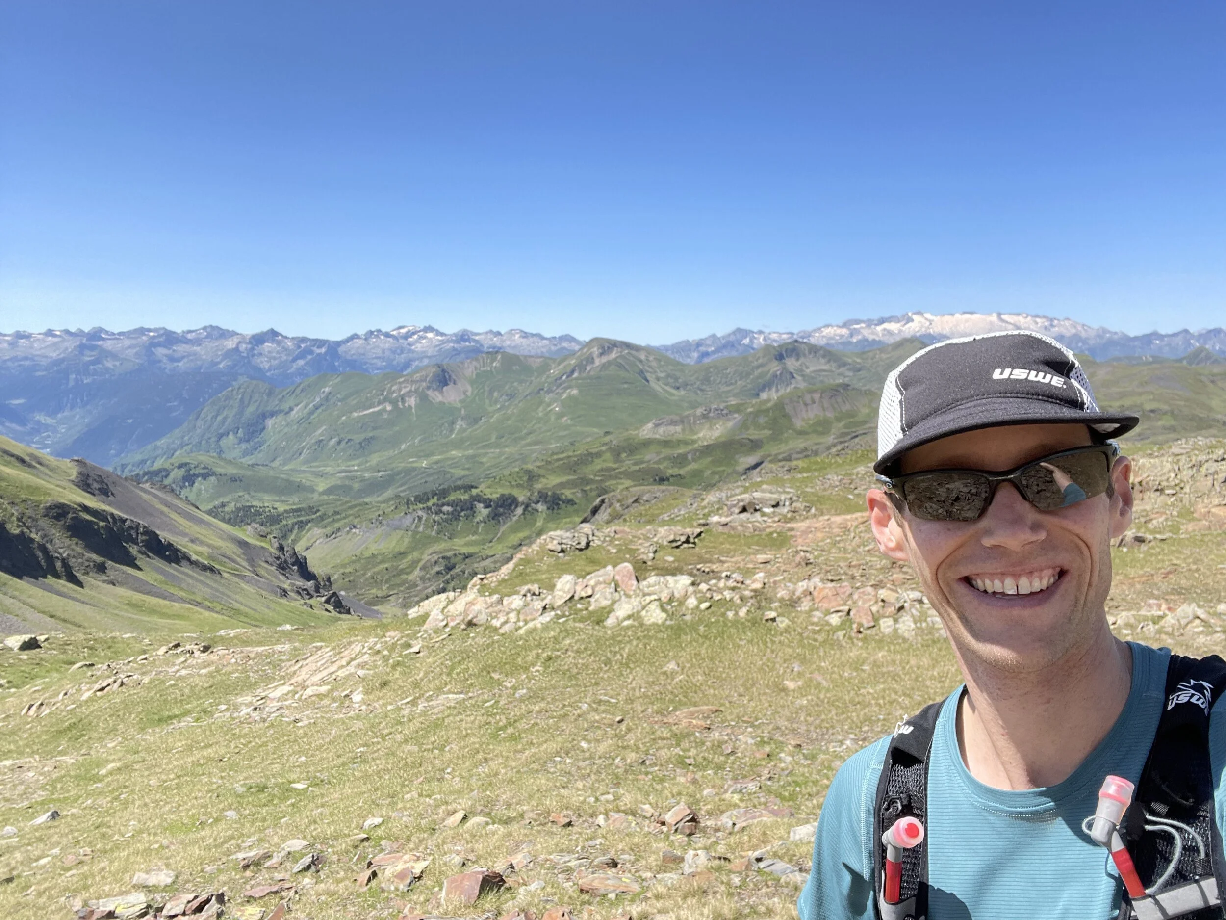 I refueled and was soon back out to tackle the next climb. This was longer than I thought, but I felt good and was powering up and passing people. It reminded me a lot of the Col du Bonhomme climb at UTMB. We eventually crested the top, and my jaw hit the floor. We had huge vistas of surrounding peaks, including the highest mountain in the Pyrenees, Aneto.