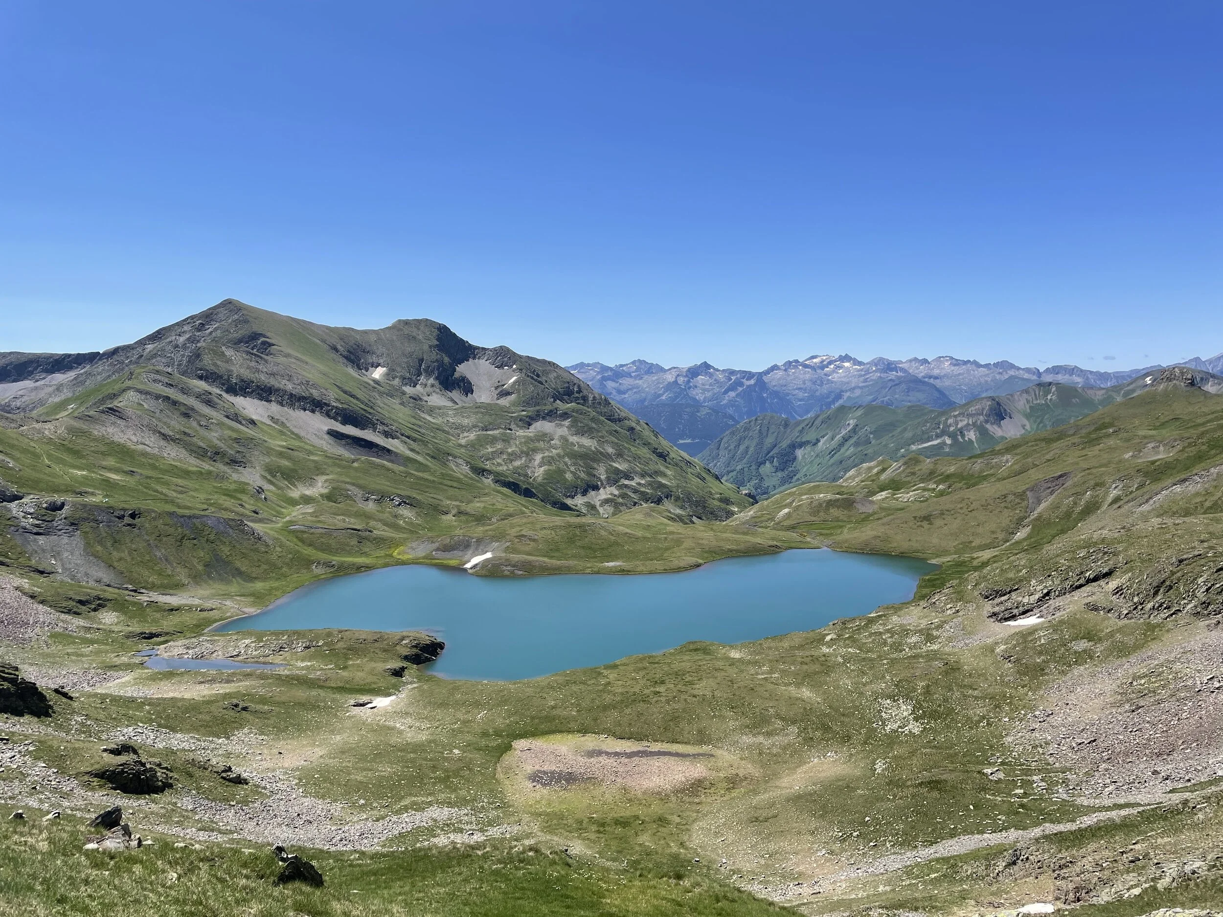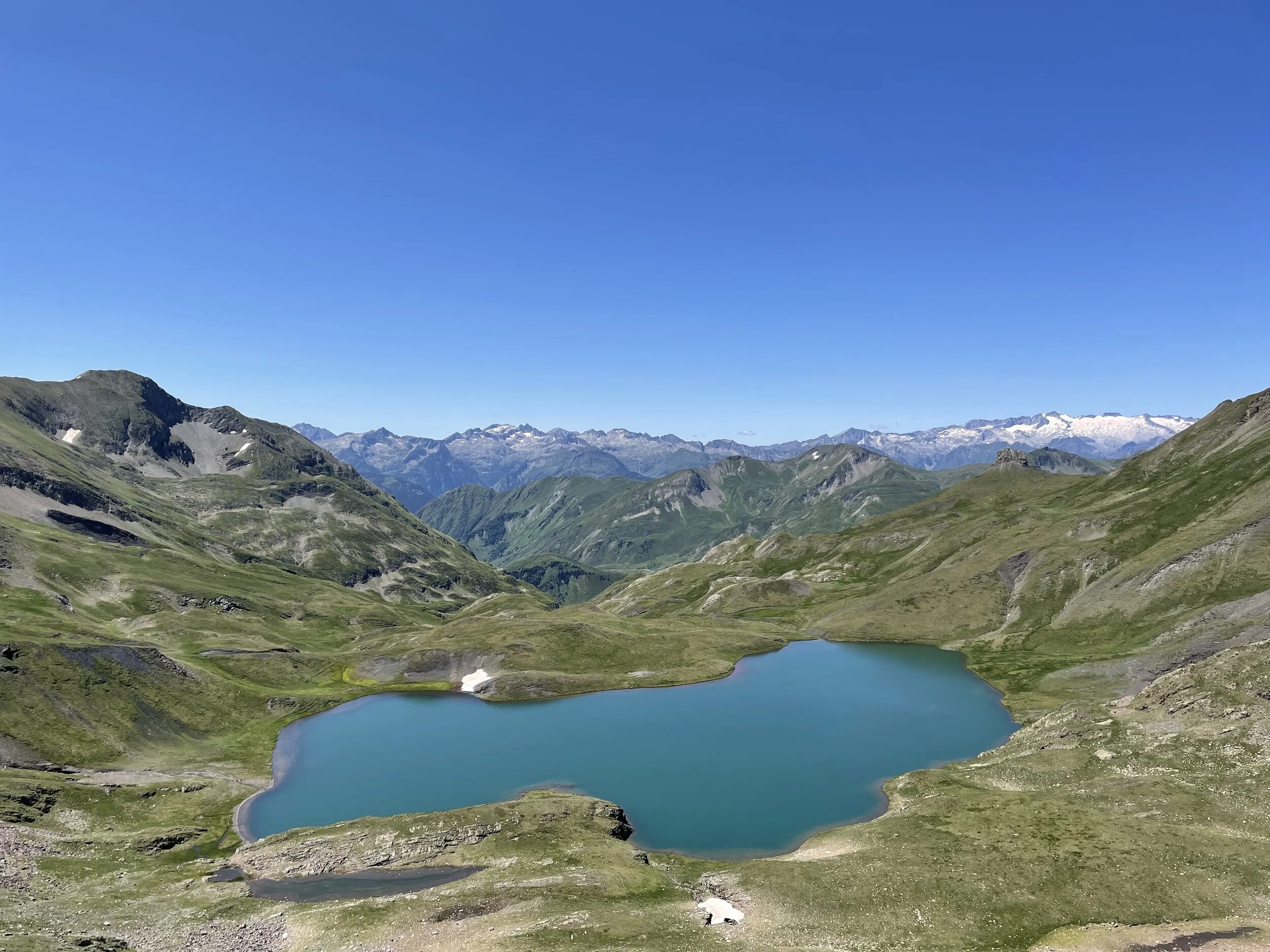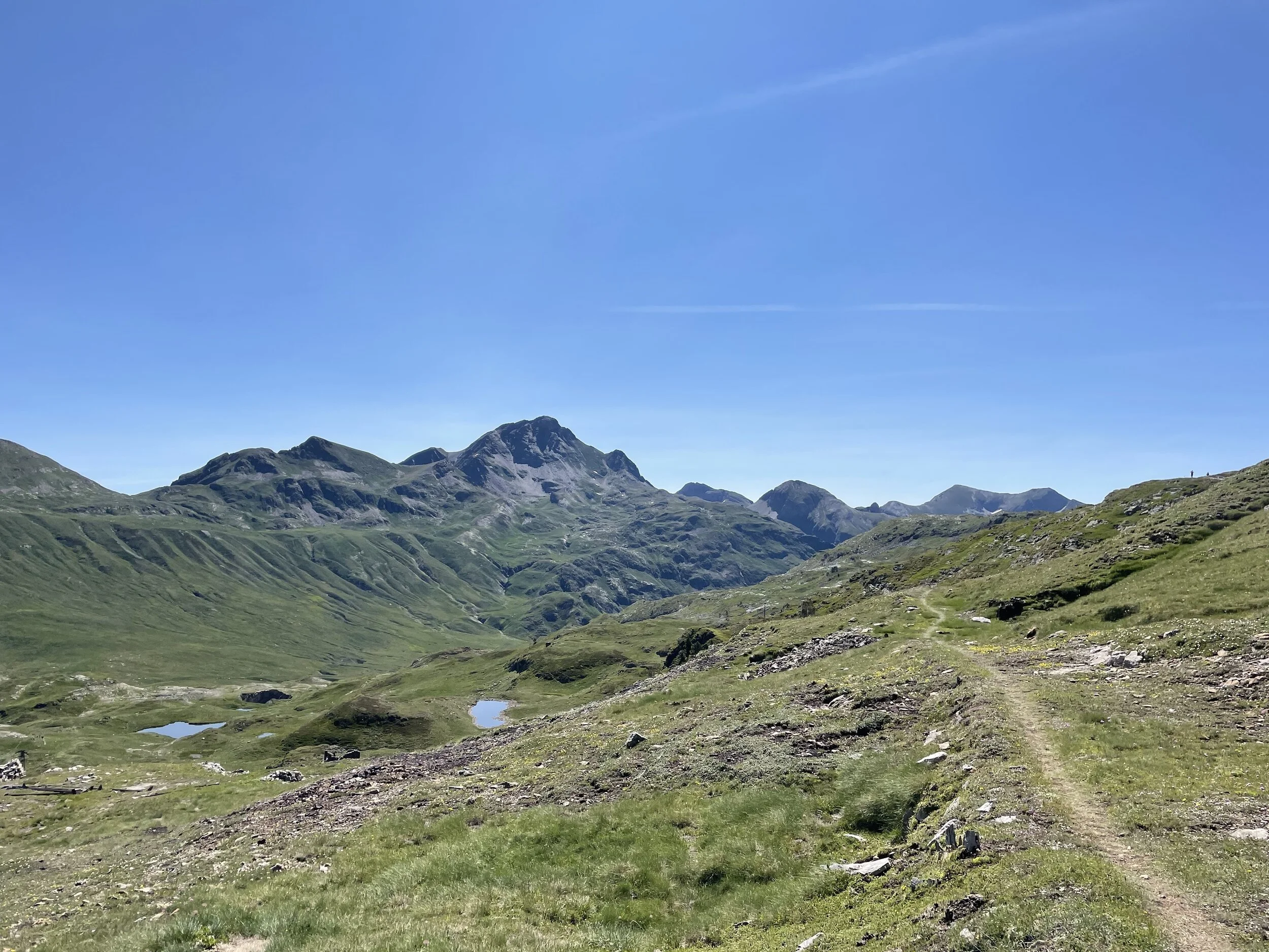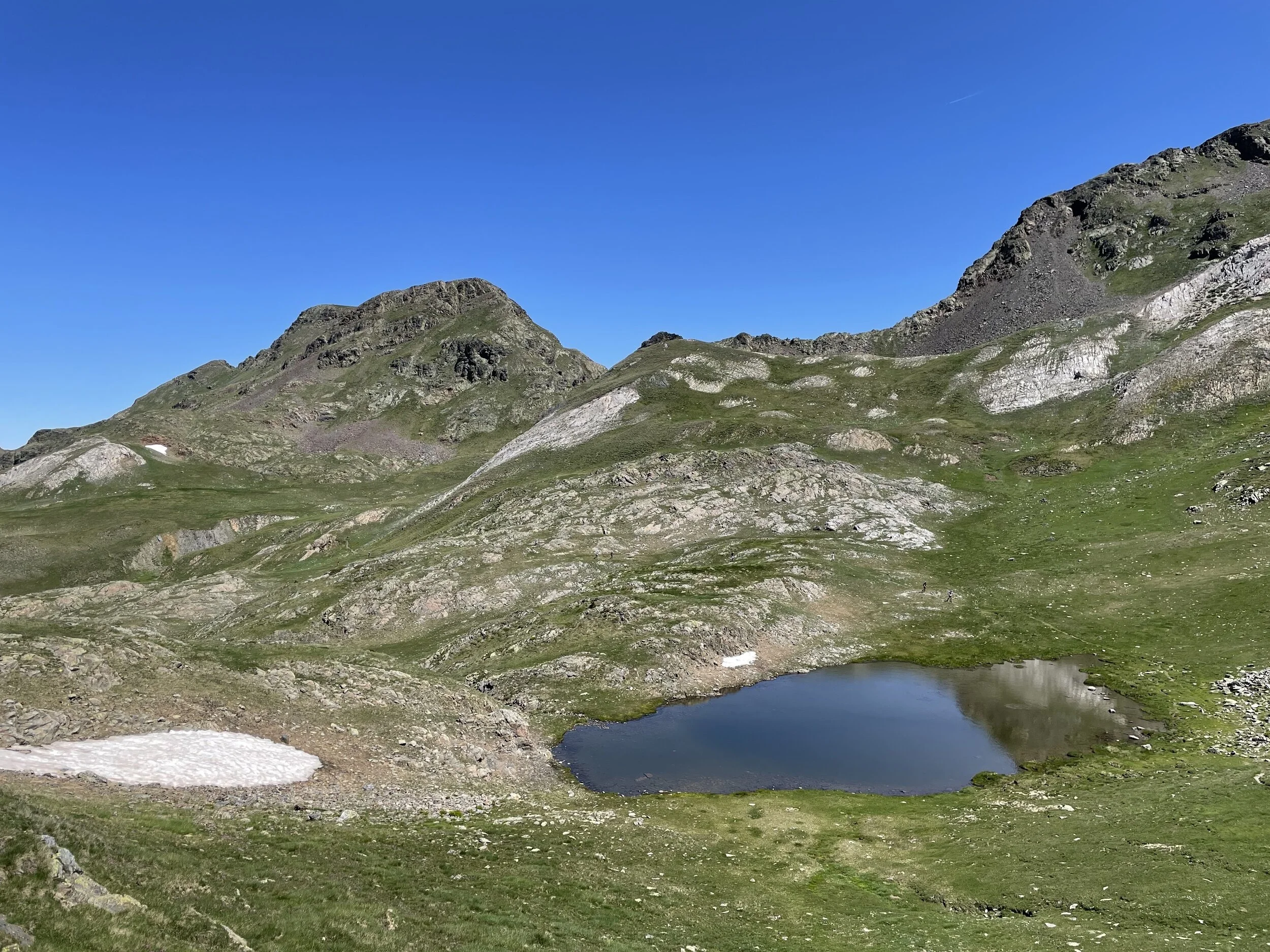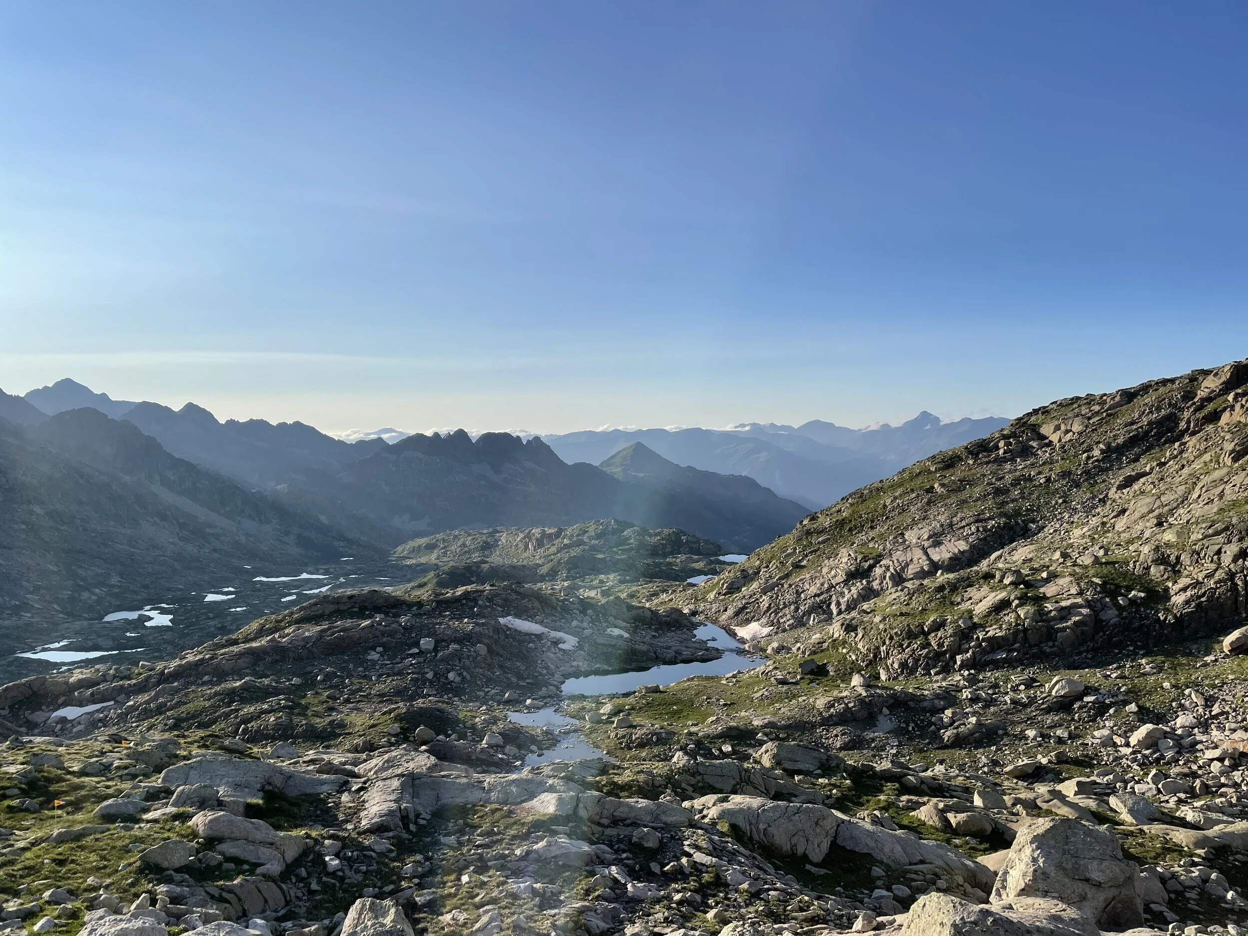 I refueled and was soon back out to tackle the next climb. This was longer than I thought, but I felt good and was powering up and passing people. It reminded me a lot of the Col du Bonhomme climb at UTMB. We eventually crested the top, and my jaw hit the floor. We had huge vistas of surrounding peaks, including the highest mountain in the Pyrenees, Aneto.